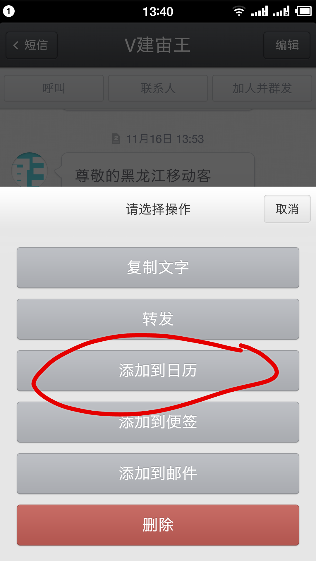 都不支持”长按短信–共享–发送到日历“ 这样的功能。