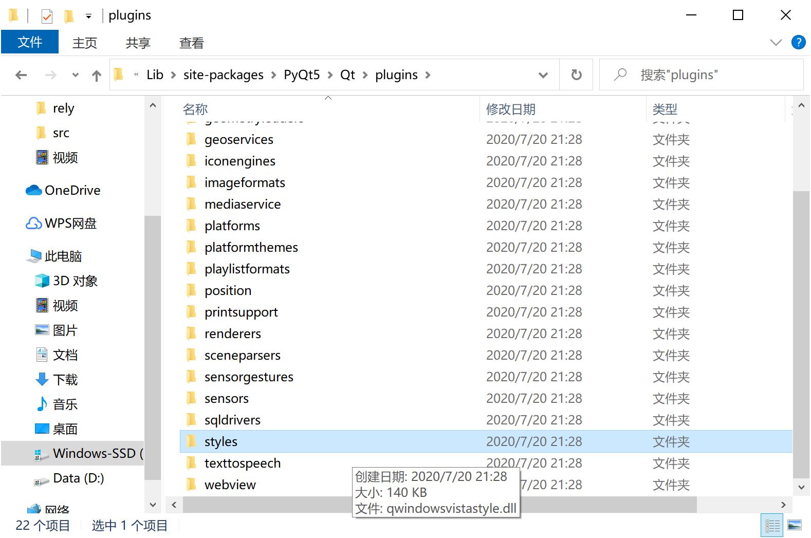 长得很丑对吧。这是因为缺失了 styles 文件夹,你需要到 PyQt5 的安装目录,找到 styles 文件夹: