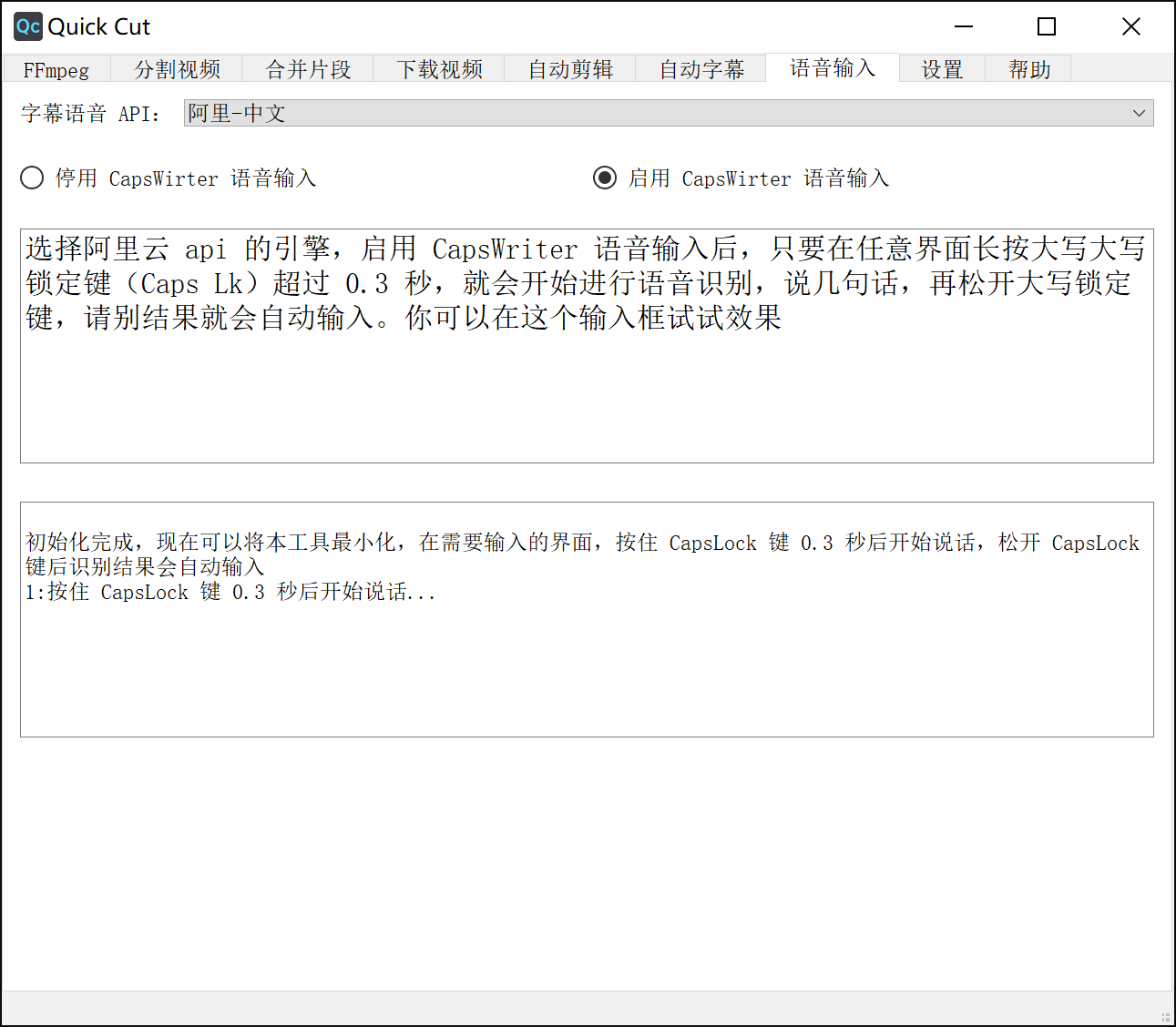 在 Quick Cut 里,我做了 语音自动转字幕 功能,可以使用阿里或腾讯的 Api。就以阿里的 API 为例,普通元套餐的商用价格是 2.5 元/小时,四十五几乎就是不要钱!下面的帮助里,我写下了申请阿里 API 的教程,只要填入 API,就可以使用语音转字幕了。