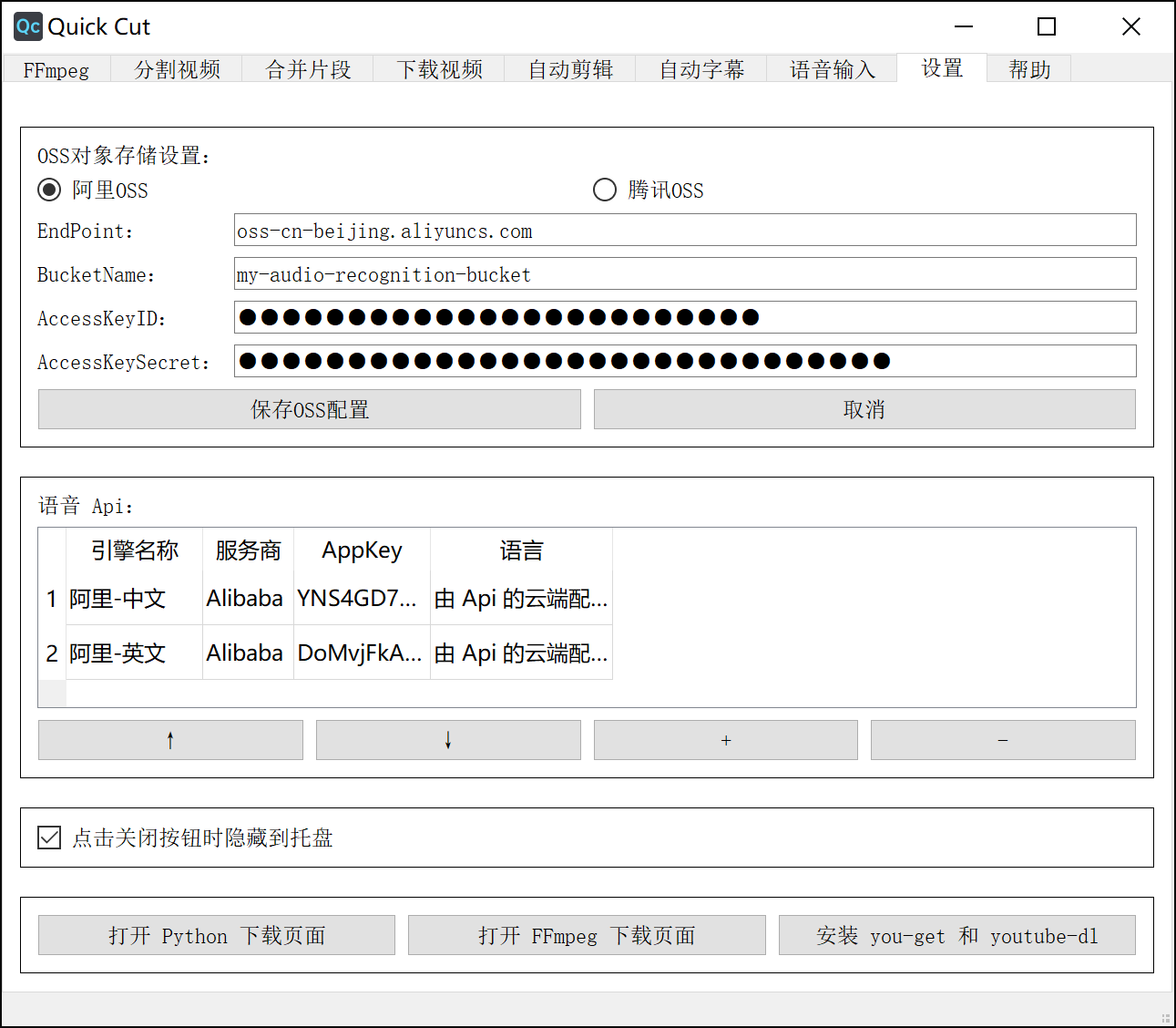 点击去查看 Quick Cut 配置阿里云语音识别引擎的视频教程