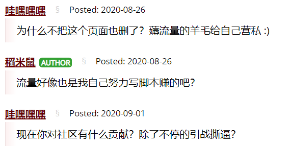 知道我的是付费脚本(自助),拿着二次发布,一副打了恶龙的语气,原作者收费,我拿来免费发布给大家。还做了修改……可我代码中也没加限制啊,结果被这人改的脚本根本没法起作用了。