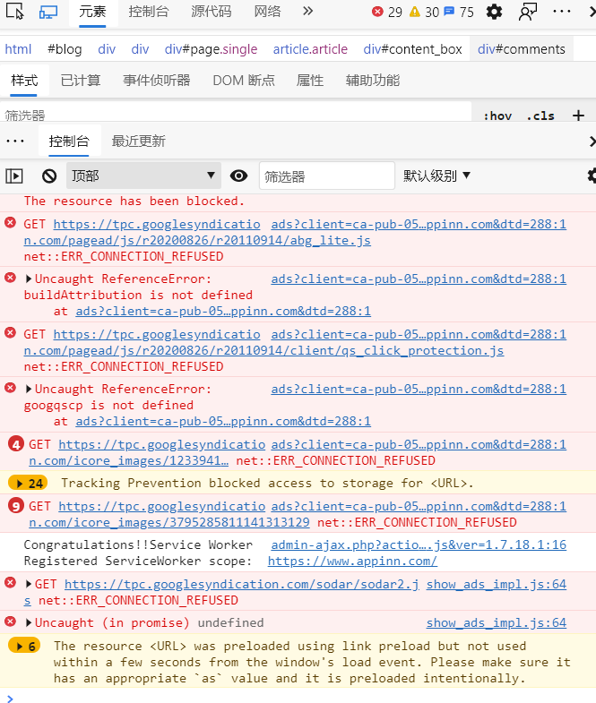 调用的是google的字体,好像是被屏蔽了。还有,就是如果不开ad block的话,控制台一直弹出 unknow message。360的chrome78