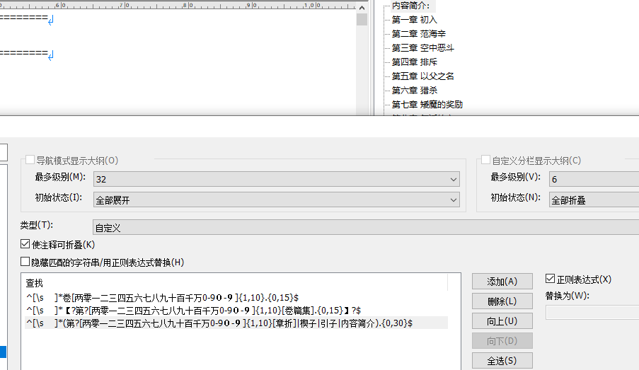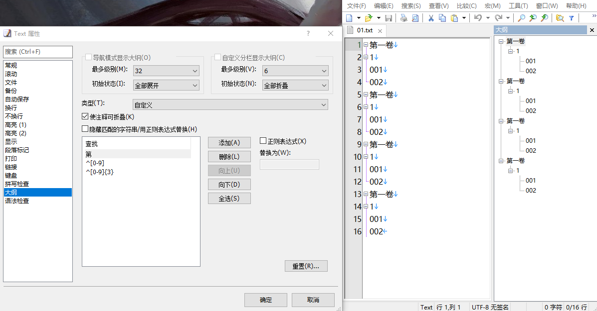 英文正则都起作用,中文正则这种写法在高亮等其他地方都起作用,唯独在大纲不起作用。
