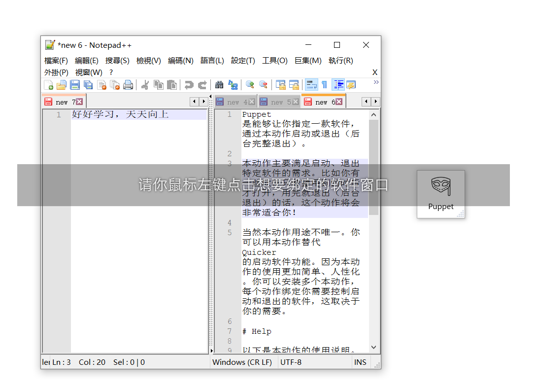 以下是本动作的使用说明。你可以看一遍视频就知道怎么用本动作。本动作以 Notepad++ 为例说明。
