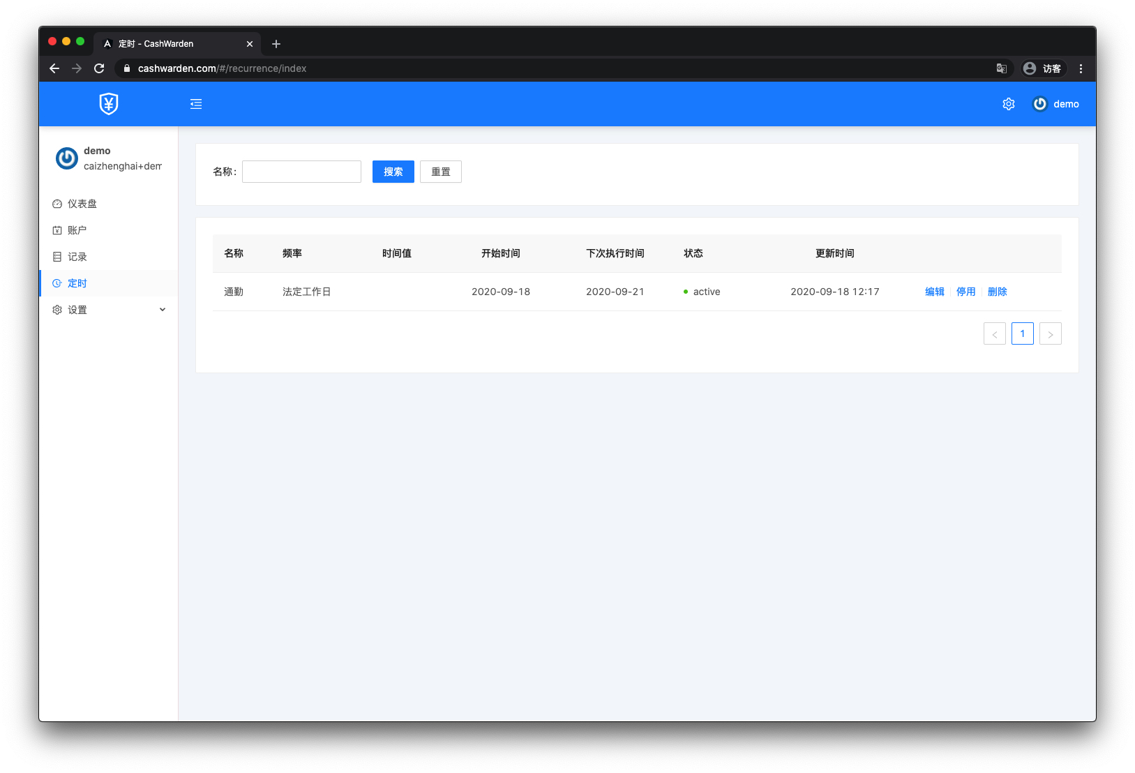 目前支持按天、按月、按年,工作日甚至是法定工作日配置定时记账。