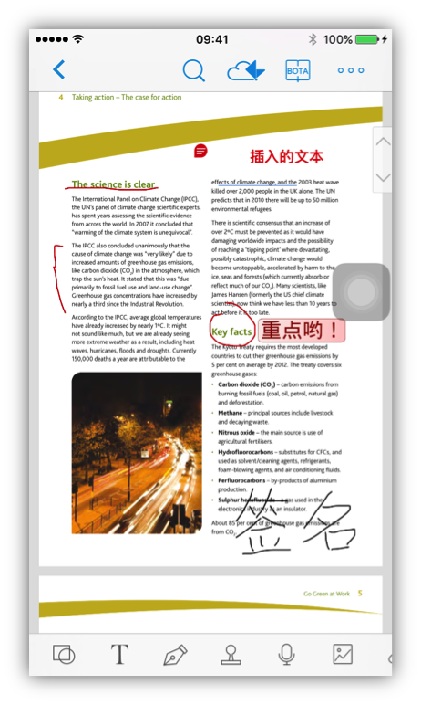 重点是还可以添加录音(Audio)和图片(Photo),特别是不想动的时候,将自己的读后感神马的直接录音插入到文件中,真是懒人神器呀!尤其上课老师讲解的 PPT 哗的一下就过了,你们懂的,直接拍照,再插入图片到电子档课件PDF 中,以后慢慢看啦~