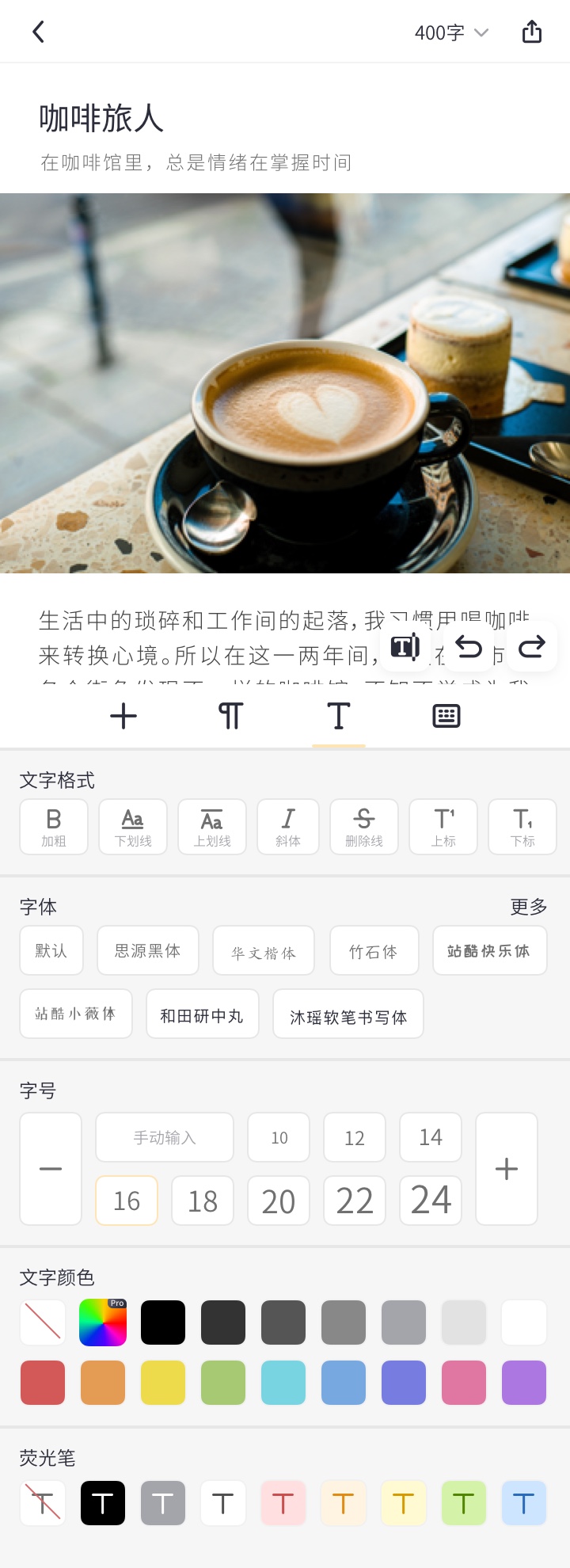 丰富细节的排版,支持导出图片,pdf,文字等格式,界面简约的长图文笔记应用。