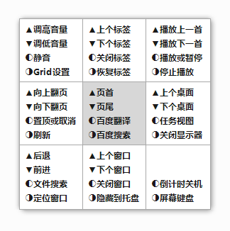 - Grid 2.2.1版为AHK脚本版,长按鼠标右键再移动后显示操作面板,添加了鼠标滚动触发机制