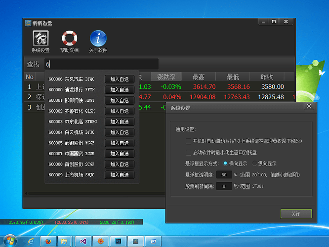 透明悬浮框运行在桌面,主窗口隐藏托盘,方便上班时悄悄看盘。