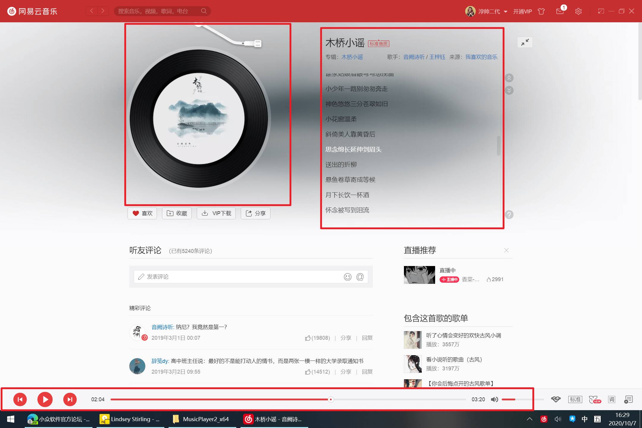像是网易云播放器那样的音乐播放界面,点进去就不是让你关注音乐的,界面各种和音乐本身无关的信息在抓你的眼球和注意力,跟音乐相关的元素只占很小一部分: