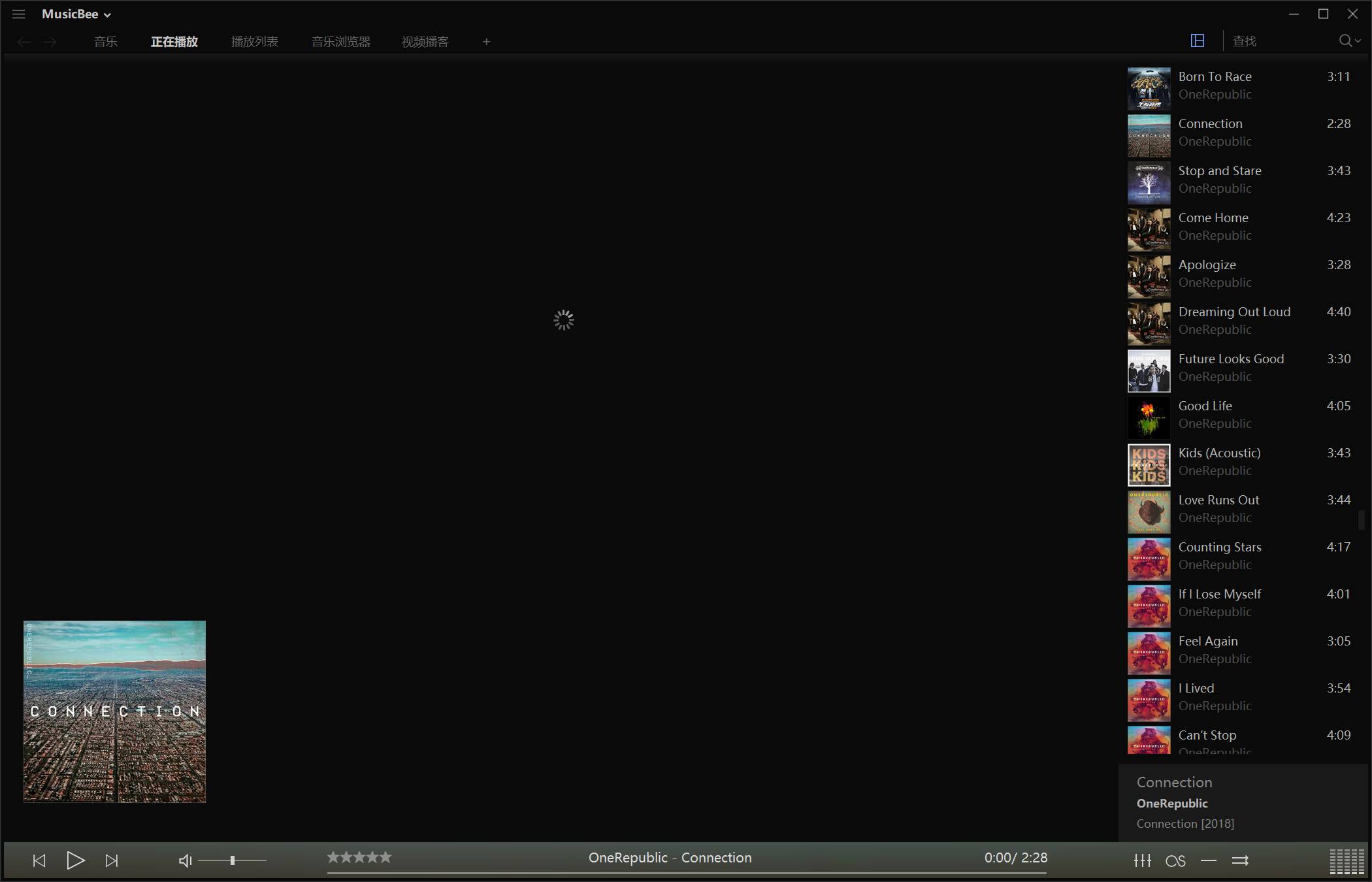 我的正在播放页面一直是这个加载的页面,并且一打开可视化显示,就会卡死