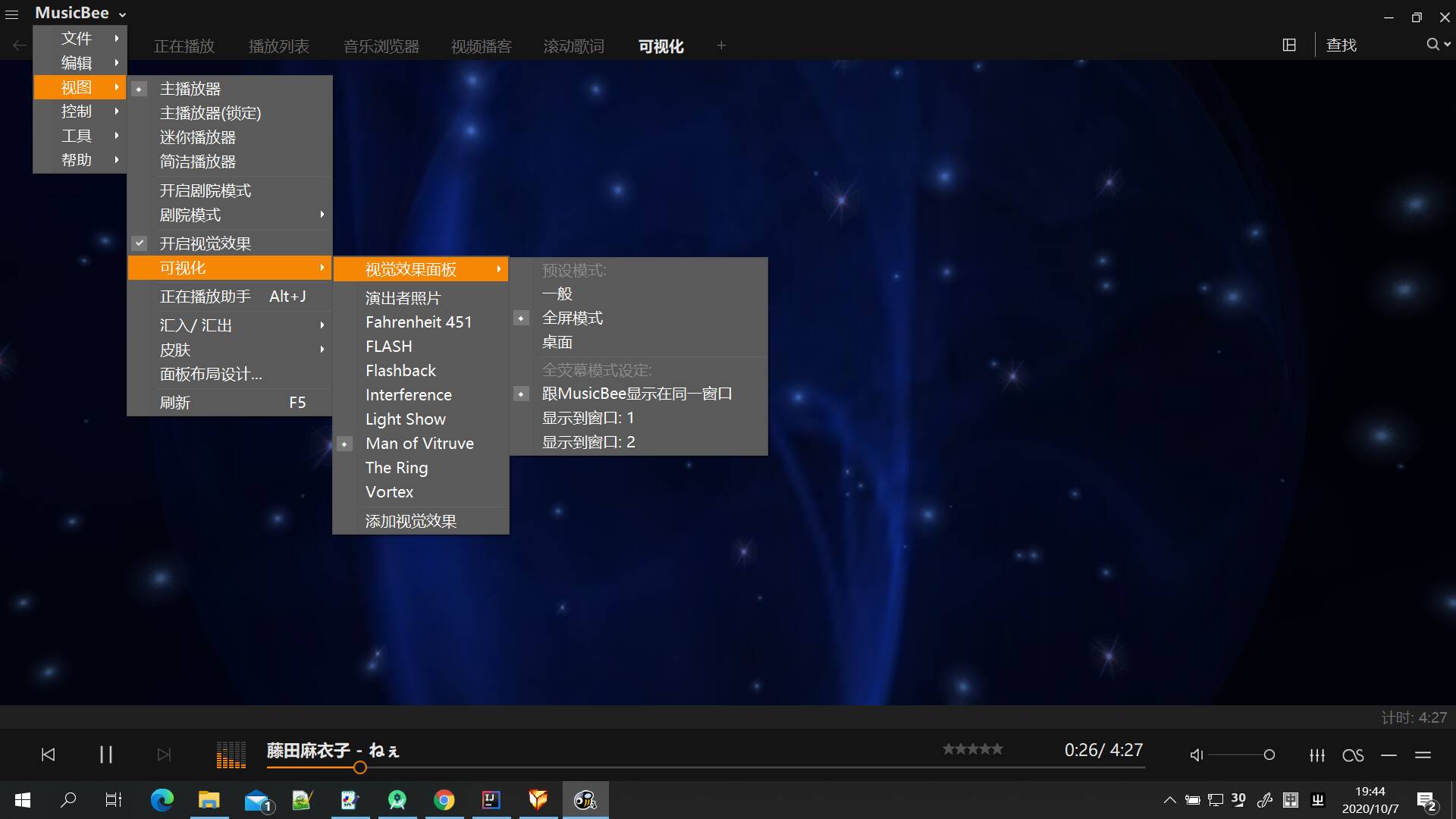 值得一提的是,musicbee是除apple music以外,唯一自带超清音乐可视化效果的播放器