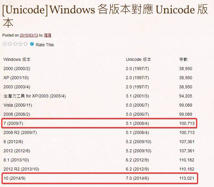 Windows 不同版本对应的 Unicode 版本也不相同? [Unicode] Windows 各版本對應 Unicode 版本