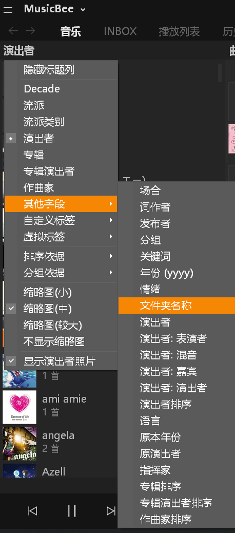 MusicBee可以依据四类乐曲信息筛选查找文件:
