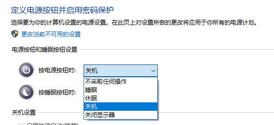 电脑win10 电源设置, 选择电源按钮设为"关闭显示器".