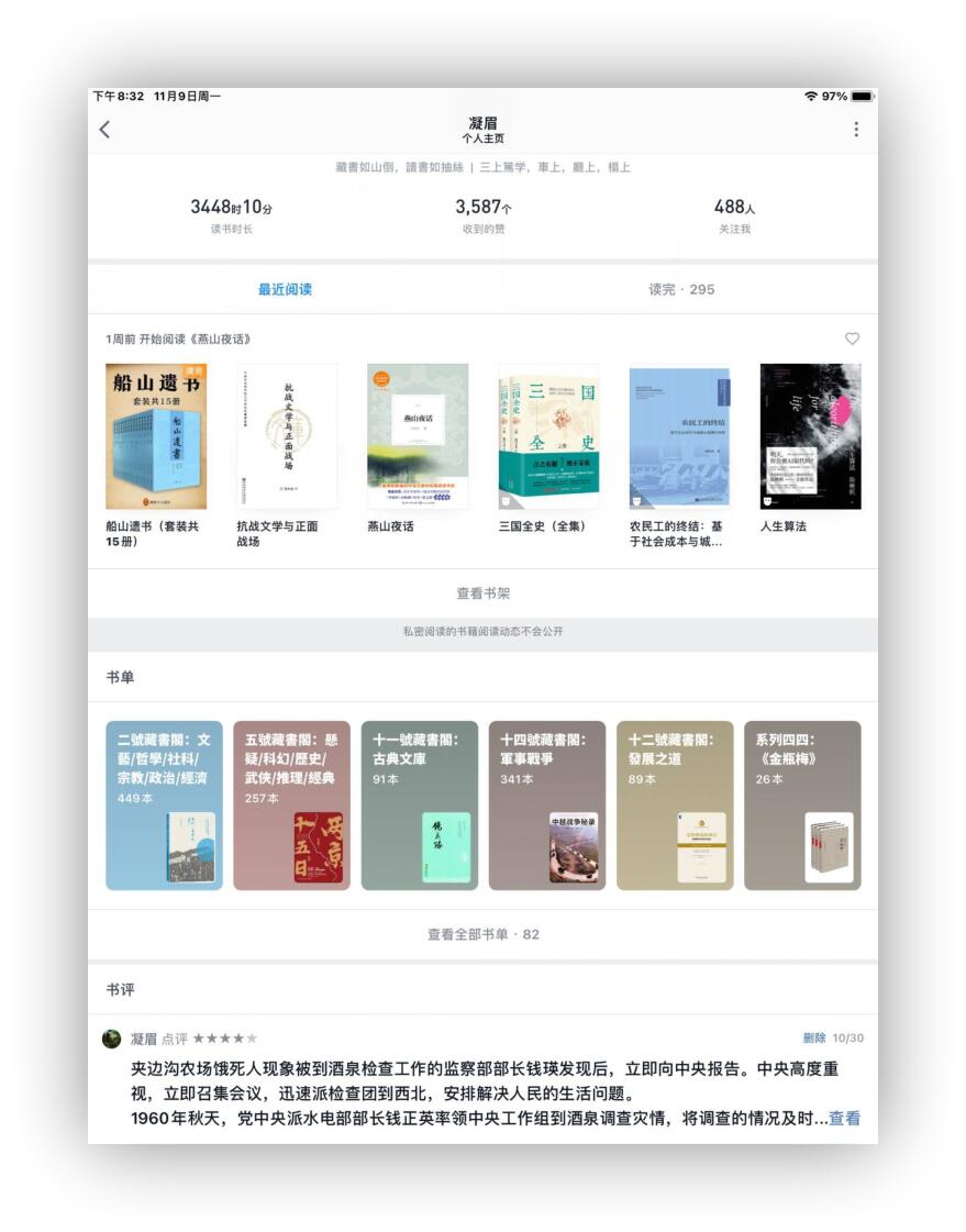 有些同学读书自律性相对差一点,希望能有个读书组织,起到相互督促的作用。「读书小组」就可以创建或加入一个组织,在组织内,可以看到小组每月的读书排名情况,排名数据每月第一天会重置。