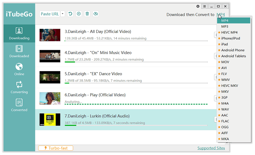 *下载来自YouTube, Facebook, SoundCloud等上千网站的音视频 *支持1080P~8K超高清视频下载 *支持一键转换音视频文件为mp4, mp3, avi, m4a等多种格式 *支持批量下载 *支持字幕,歌词下载