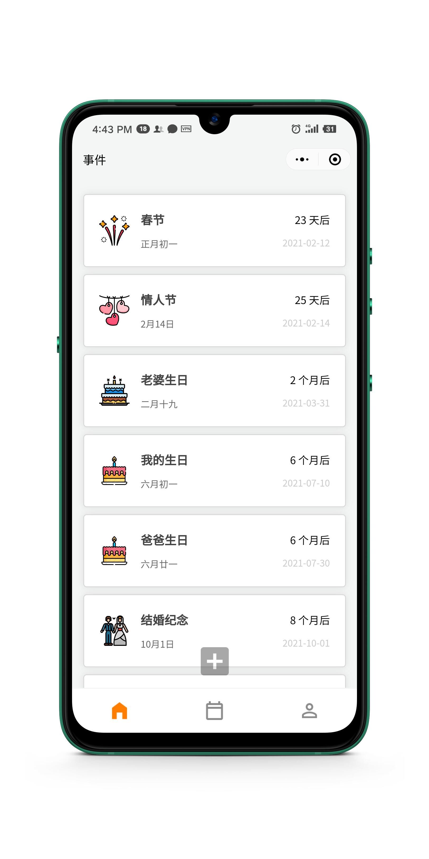 之所以开发VersMind是因为工作忙,经常忘记家人的生日,每次都是等到对方问我,所以下定决心要把他们的生日都记住了。于是乎找了类似的应用,发现都没有达到自己的理想状态,于是开发了一个。小程序截图如下