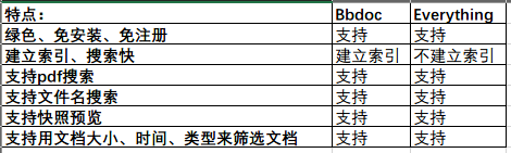 我根据你说的“有理有据”的那篇文章,做了一个对比表格,对比了一下BBdoc和Everything的特点:(如果哪里对比的有问题请指出,我来修改并道歉)