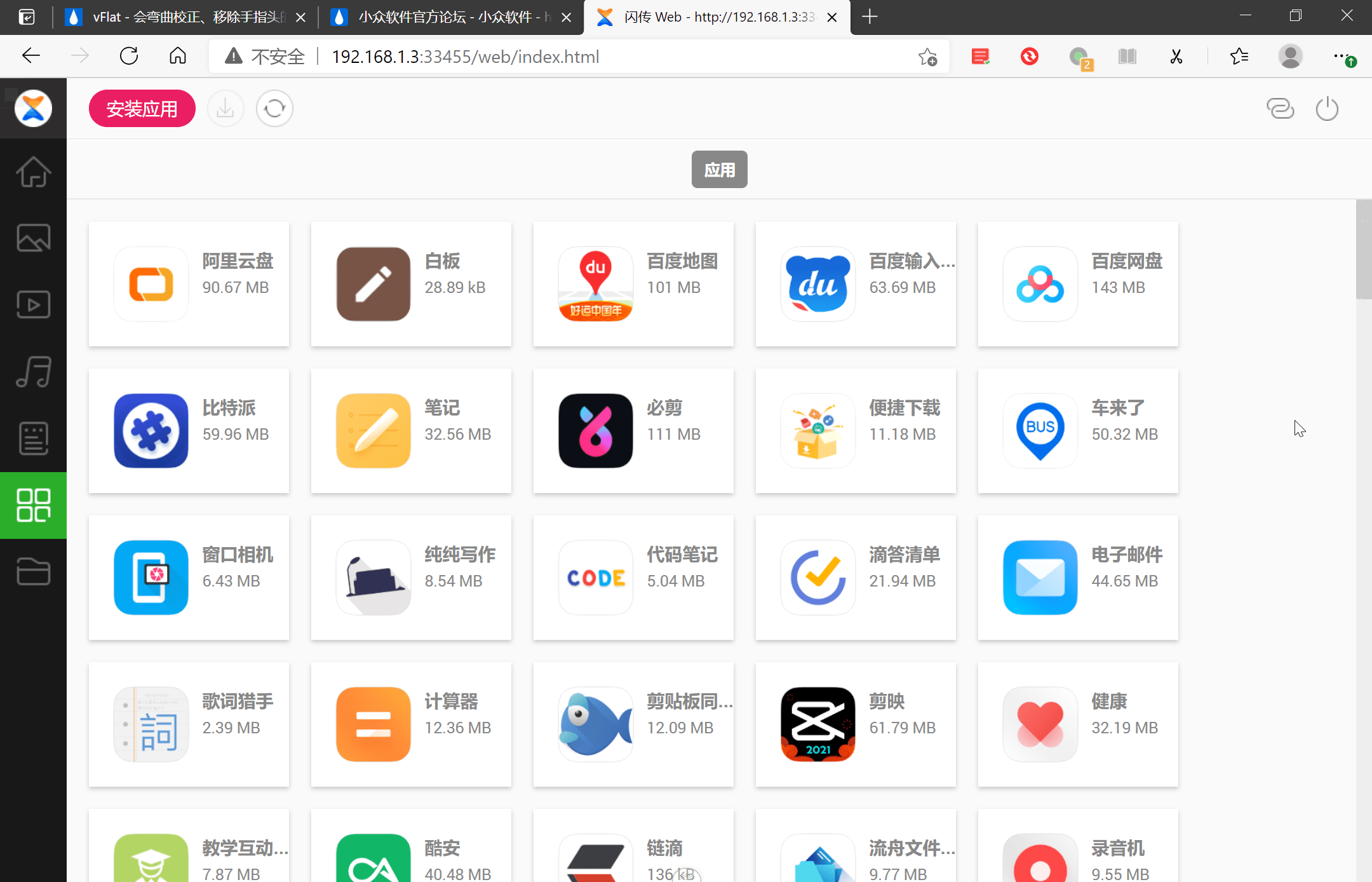 - 安卓上的 App,打开后可以开启服务,用电脑浏览器访问后进行管理