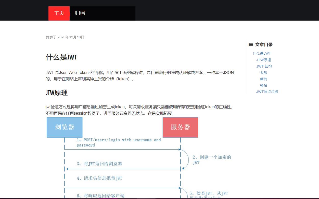 先看看文章效果。在浏览器浏览效果。可以看到右边有文章目录的。
