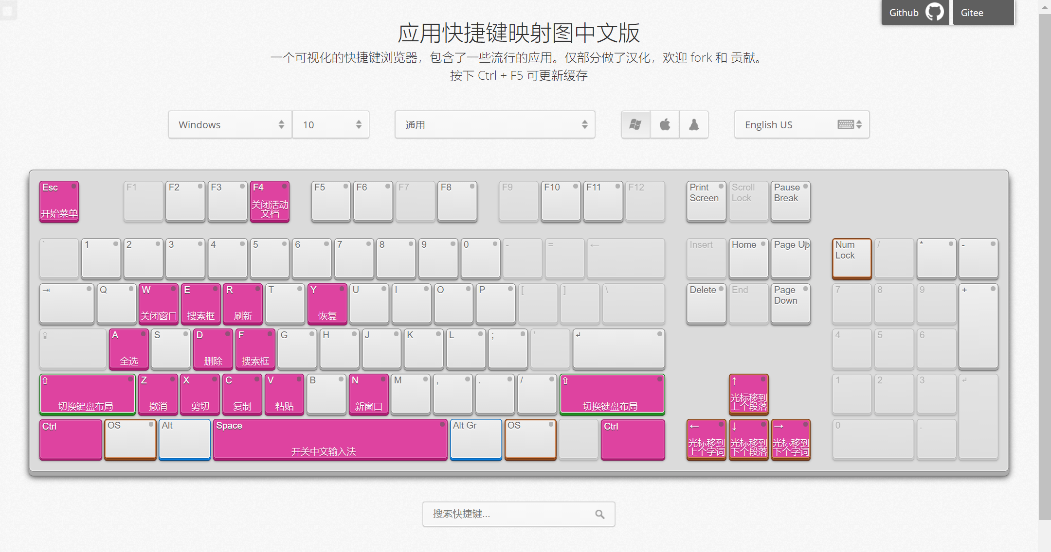 一个键盘快捷键可视化工具,托管在 Github 和 Gitee。