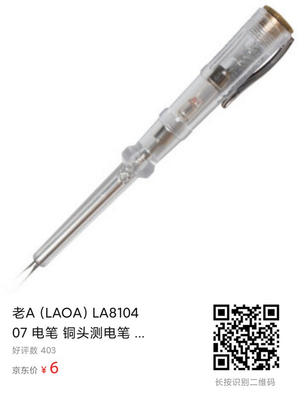 也没啥太多好说的,就提示一点:如果你和我一样对于试电笔的预算很低,就不要去买那些电子的数字款,有一些显示的效果能偏差到姥姥家去,试什么都有电,试空气都有电。