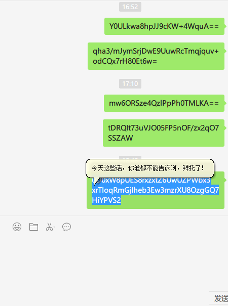 首先,加密内容可以很好的防止IM软件厂商的常规扫描(敏感关键词等),经过base64编码,你的信息都是平淡无奇的字符,只要不是针对你,特意调查你,你的信息安全是可以得到保证的。