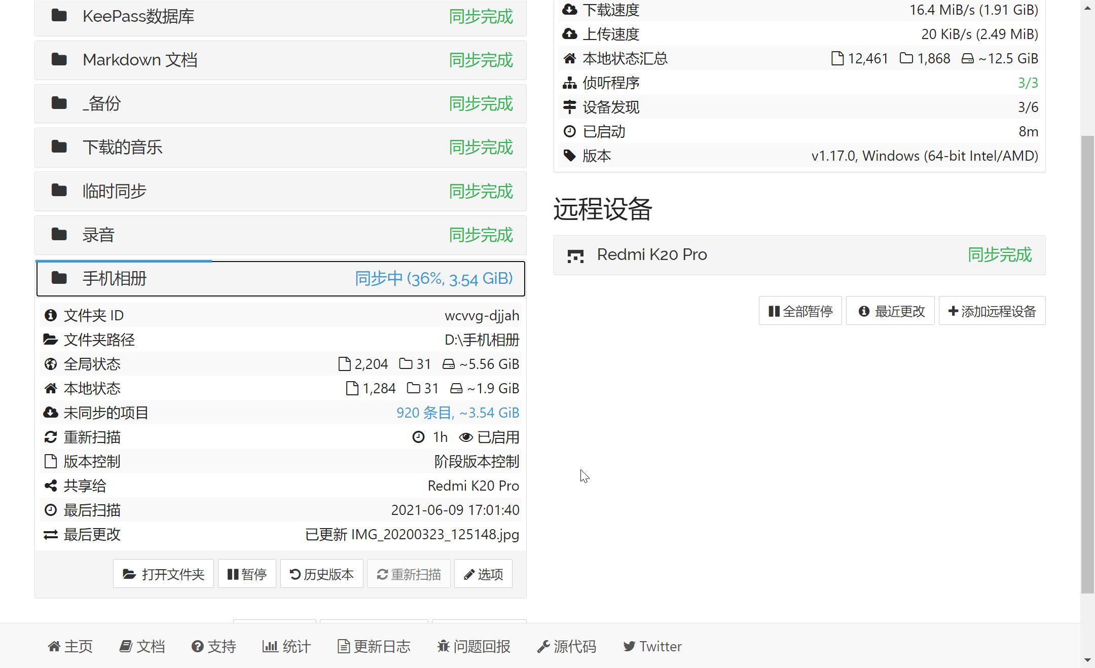 目前 Syncthing 的缺点在于它的 P2P 发现服务器在国外,国内跨网段不是太好打洞直连;在同一 WIFI 下、热点下倒是很好互相发现。我是自己搭了 发现服务器,现在 4G、WiFi 等不同网段才都能顺畅直连了。
