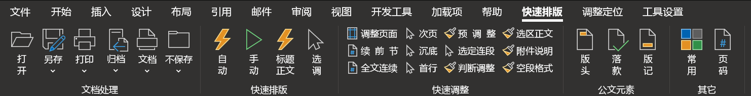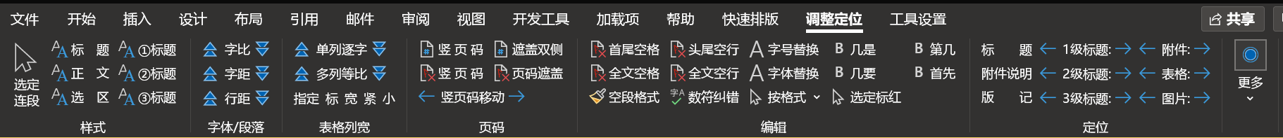 2、半自动排版:即选即调、一键调整等半自动功能,极致简化WORD排版