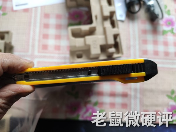 因为第1次上手带来的巨大反差感,所以我就觉得它非常薄,但是从上图看好像也并不是很薄。把美工刀放在侧面正好遮住。