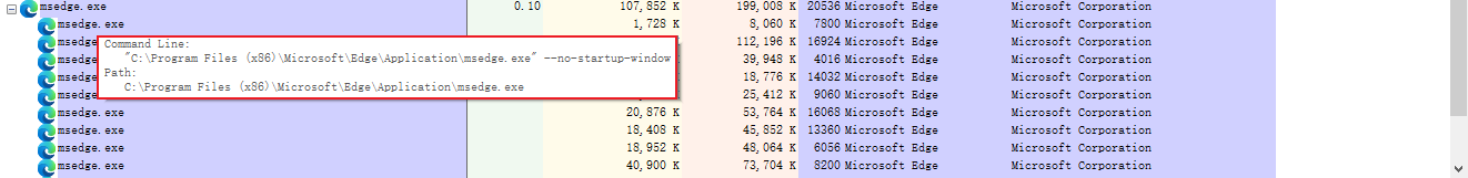 这个跟我自己启动的 edge 的 command line 一样,就一个 --no-startup-window,这个可能才是原配。