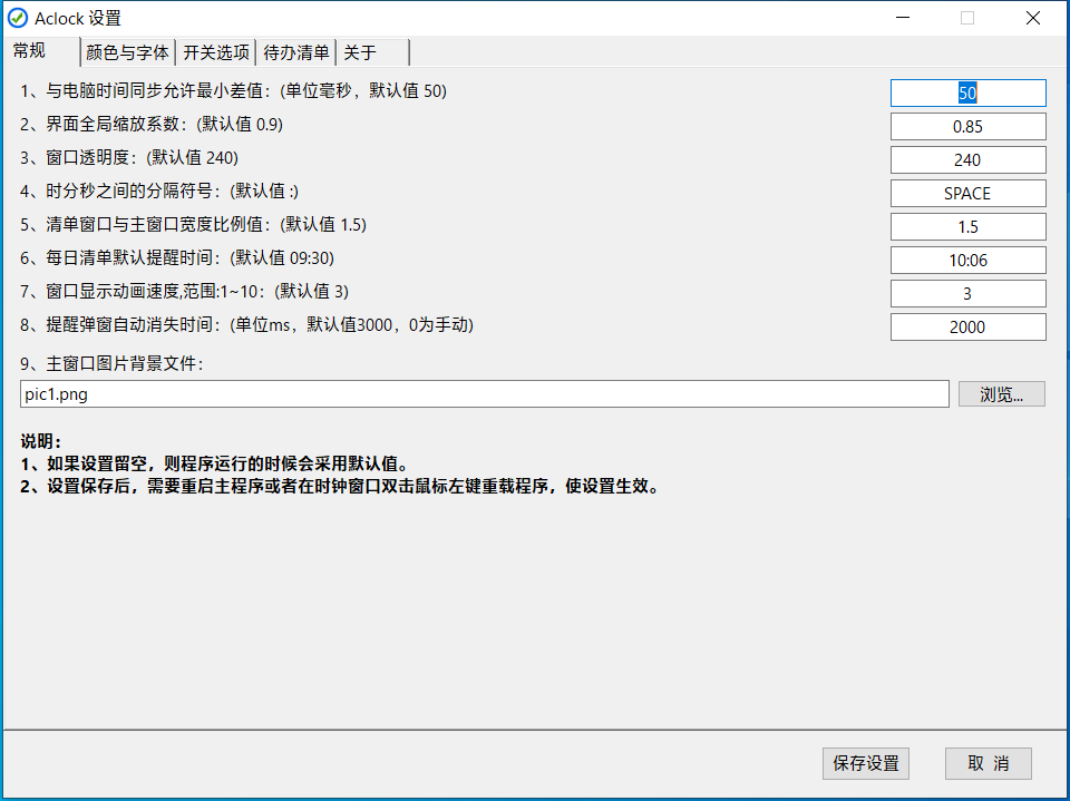- 可以设置鼠标移动到时钟主界面,自动显示或者点击显示今日待办清单列表
