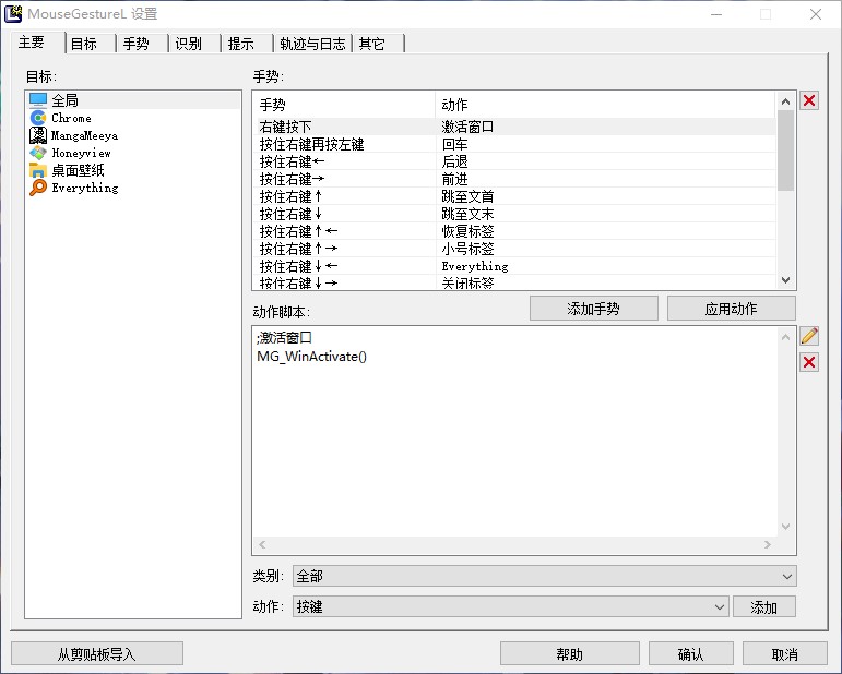 - 不仅仅是鼠标手势,完整的窗口判断,可不太复杂的自定义一些需在特定窗口实现的快捷键