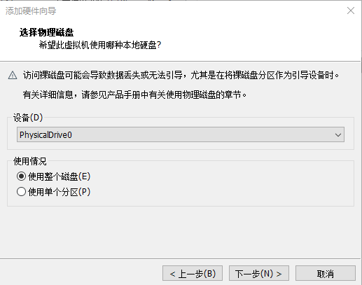 然后虚拟机安装群晖 添加第二块硬盘的时候直接选择使用本地物理磁盘