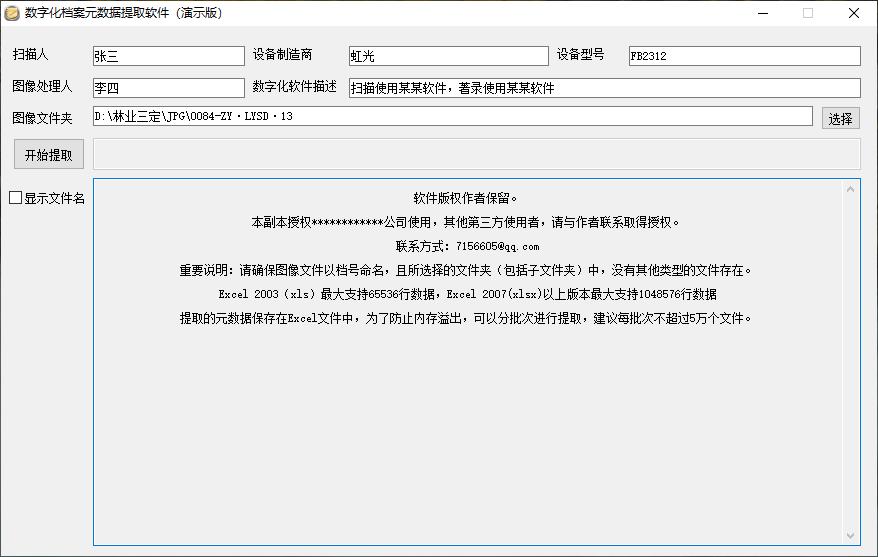 一款档案数字化加工过程中需要用到的数字化档案元数据提取软件,本软件为演示版,每次提取最多不超过100个文件的元数据。
