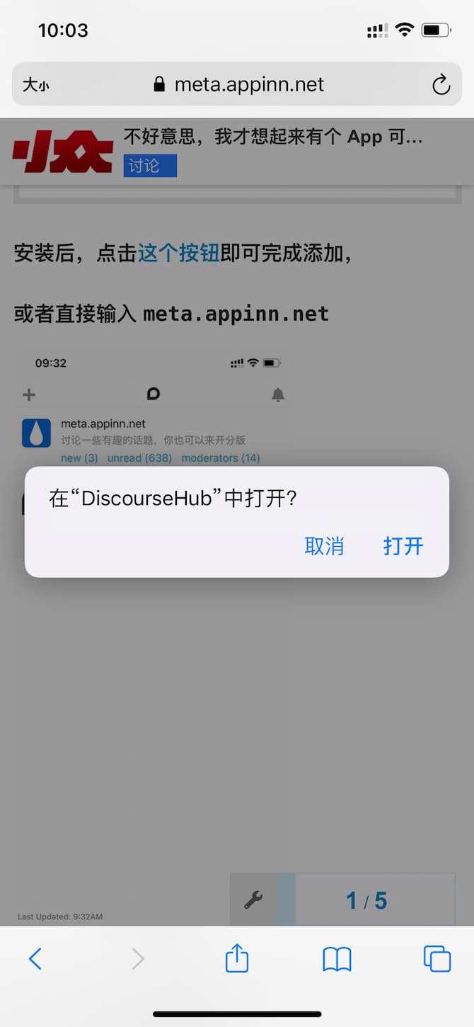 meta.appinn.netiOS 可以设置(设置里搜 discourse)在应用内打开外部链接,就不会跳转到浏览器了。