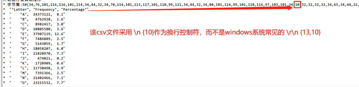 跟我预计的差不多,您所提供的csv文件,采用了“\n"也就是字节集{10}作为换行分隔符,而不是windows常见的"\r\n"也就是字节集{13,10}作为换行分隔符。当然,在类Unix系统中甚至部分windows平台下的高级编辑器中,“\n"也是比较常用的。