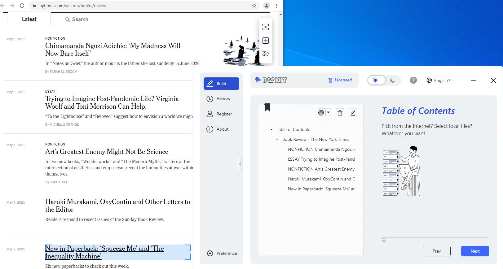 可自定义网页保存的顺序,将其按该顺序整理为电子书