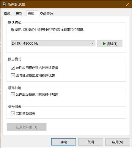 之前朋友的音响年纪大了 低频盖过中高频 拿这个简单做过补偿 后来系统更新了就没了 然后忘了怎么折腾驱动 选项回来了 但是根本不起作用 最后在 Equalizer APO 里重新调了一个,不过Equalizer APO我记得是按音频设备(或者说声卡)来分的,所以如果是使用机器上的3.5mm可能无法自动切换得再接个小尾巴,懒得再试了,楼主感兴趣的话自己验一下
