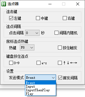 - 为了应对各种防连点,将AHK支持的所有发送模式做了选单。
