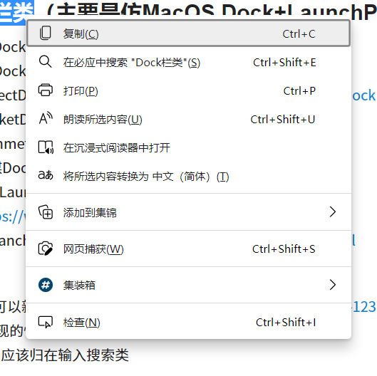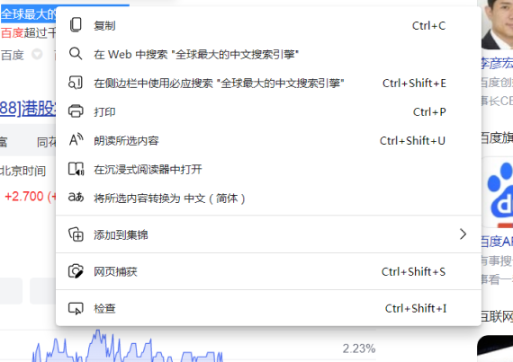 不知道什么时候,Edge的右键菜单中,“在Web中搜索消失了”,只剩下一个“在必应中搜索”