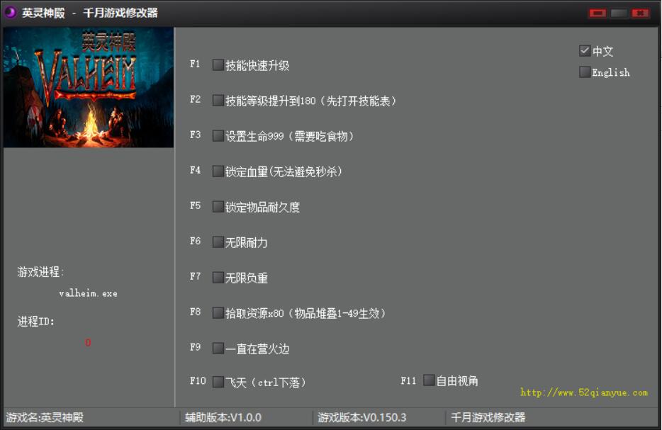 英灵神殿十一项修改器,由千月修改器出品,支持Steam上英灵神殿最新版本(0.150.3)