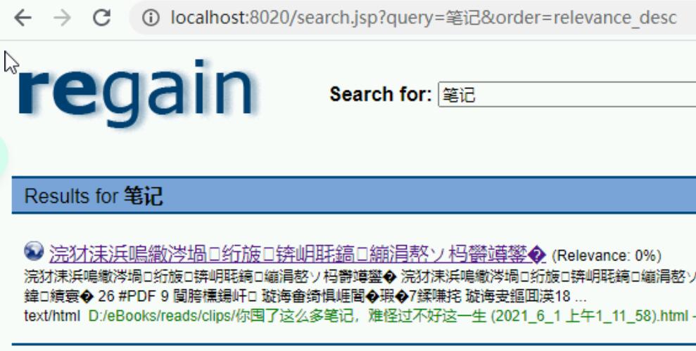 花了一整个晚上我查到一个叫做regain的java软件,带服务器端,安装完后只能搜到标题,内容还都是乱码,查了很久都没有头绪。