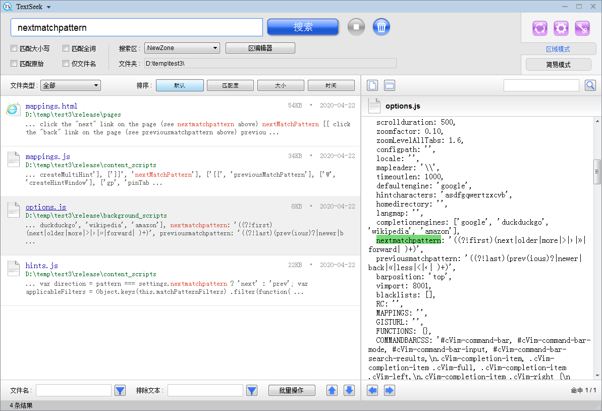 感谢 @ico 的报告,这是区域模式下的文本文件检索bug,我们会抓紧修复bug,下个版本修正。