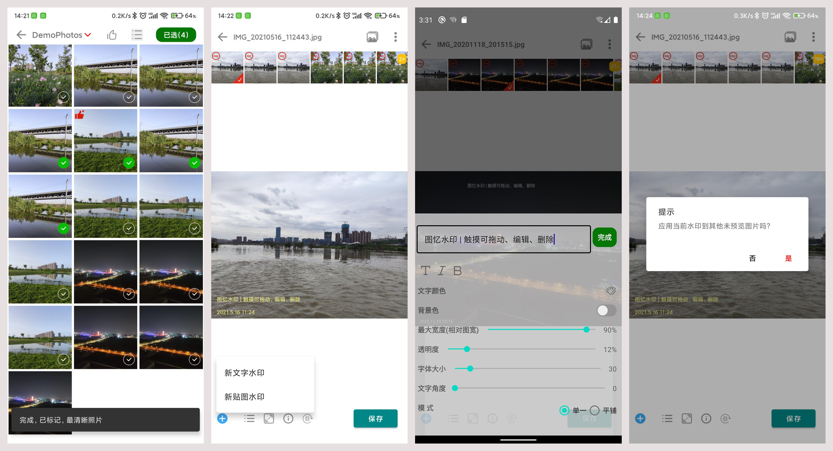 文字水印:标记图片,说明图片,并且可以从各种方面个性化水印。