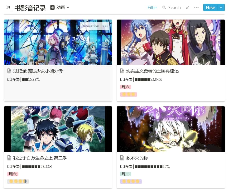 或者就像青蛙提到的 notion 画廊视图也挺好的,我之前用 notion 这样记账和记录书评