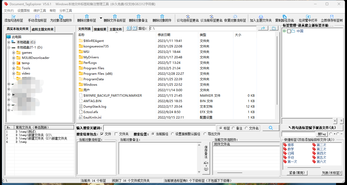 例如,我指定F:\test文件夹,指定文件格式为视频文件,则在文件列表中一次性展示F:\temp(包括子文件夹)中的所有视频。