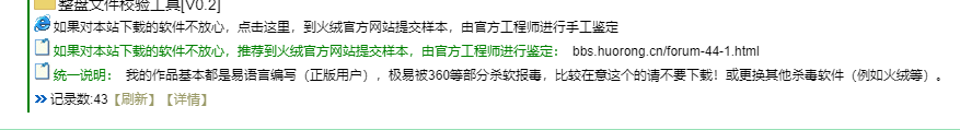 如果用户对火绒的自动检测不放心,可以将本作品打包发至火绒的官方论坛,请工程师手工检测,链接也放在我的官方下载平台上了。