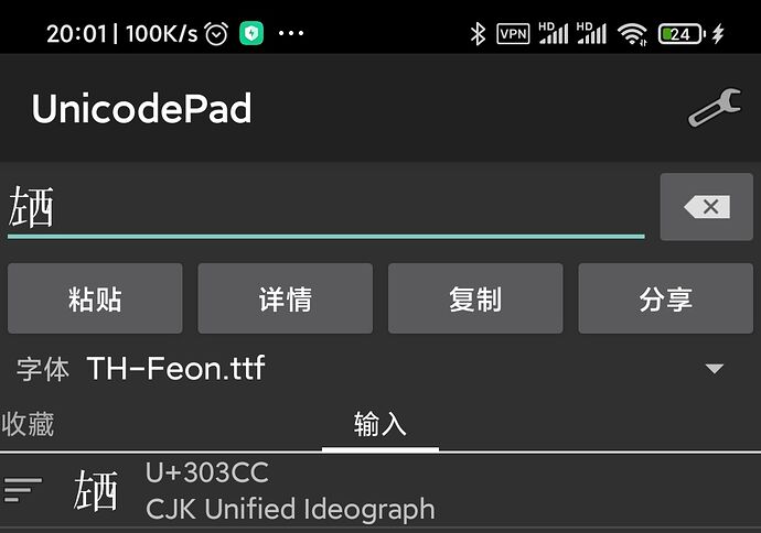 而在图示软件中,由于调用了预设的外部字体,显示出了这个汉字。